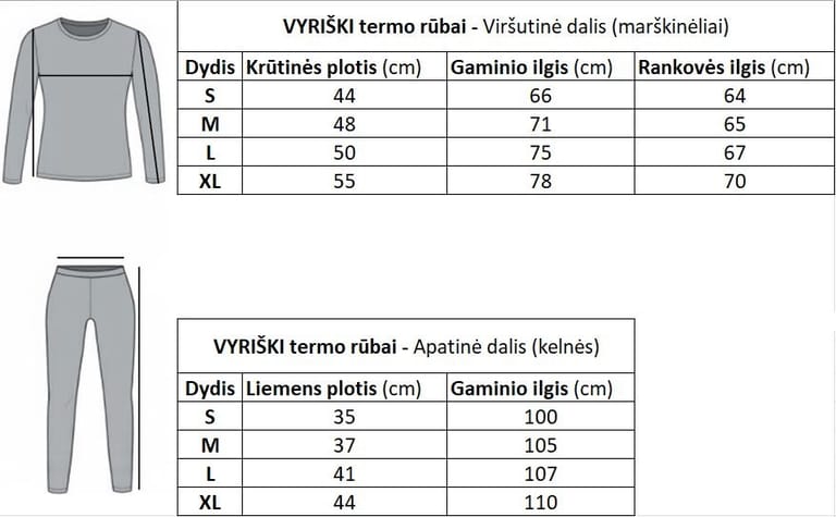 👕 Komplektą sudaro: termo marškinėliai + termo kelnės
